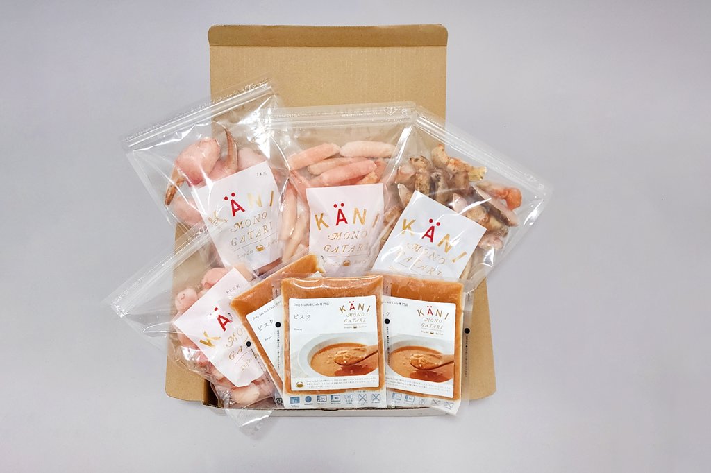 Deep Sea Red Crabは「まるずわい蟹」のこと。しっかりと詰まった甘みの強い身が特徴で、硬い殻から取れる出汁の旨味も絶品です。そして、この出汁こそが、かに物語の多くの商品の味の要になっています。